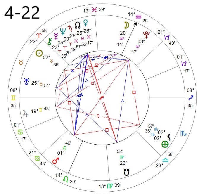 – Moon in AQUARIUS – Void of Course 10:24 PM – 4/23 1:07 PM Moving to Pisces