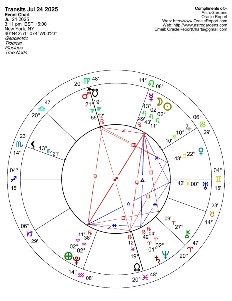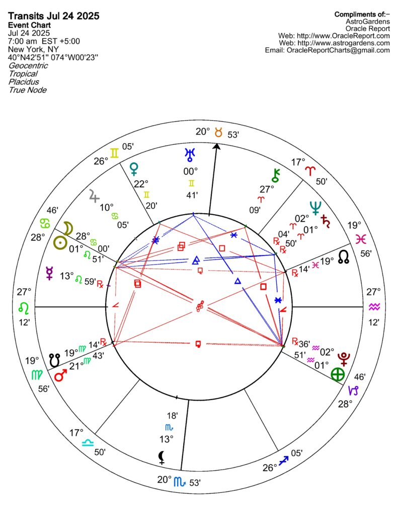 A New Moon in Leo opposite Pluto in Aquarius suggests a powerful period of transformation and potential revelations. This alignment highlights the tension between the bright, confident energy of the New Moon in Leo and the deep, transformative influence of Pluto in Aquarius. It can be a time when hidden motivations or power dynamics are brought to light, prompting necessary changes and a deeper understanding of oneself.