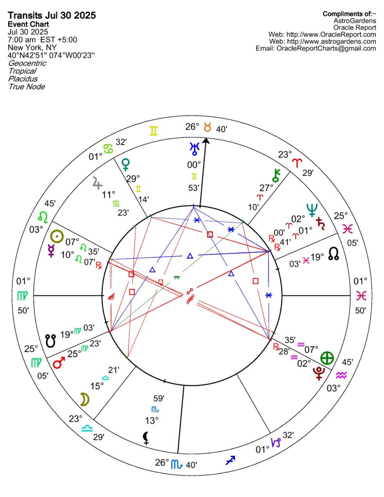 ALL DAY VOID OF COURSE – As I mentioned earlier in the month, today is one of three all day voids. Treat it carefully as we are also under Mercury Retrograde. Most precautions for each are doubly important to pay attention to: