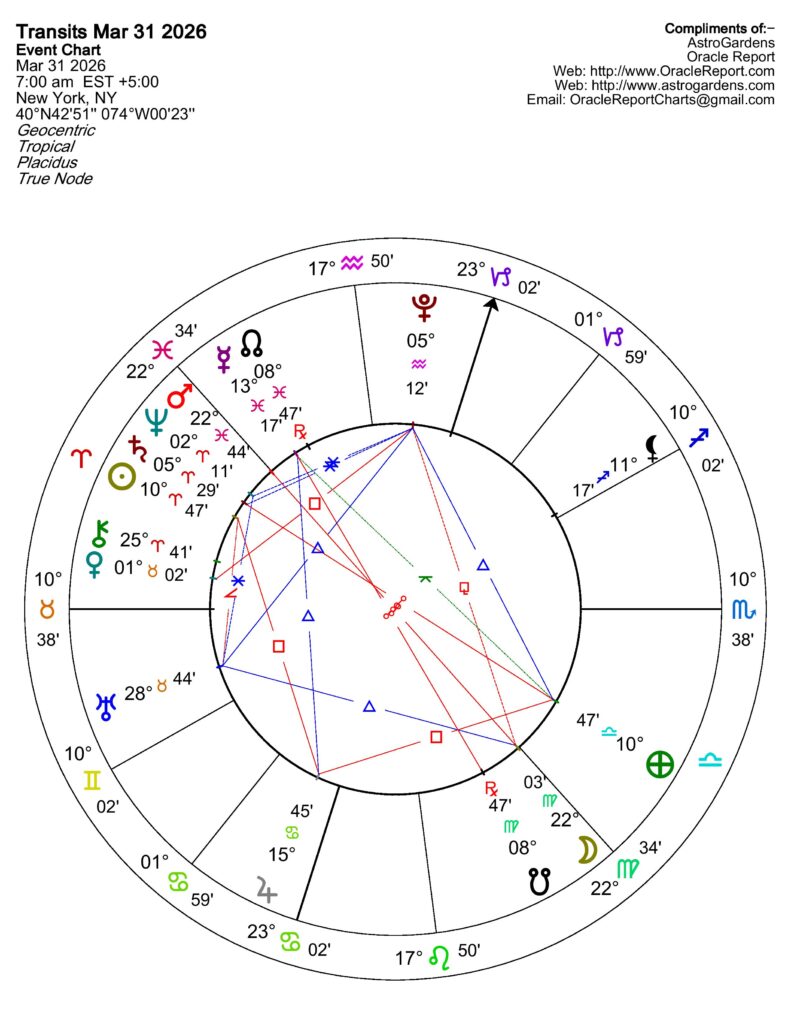 – Retrogrades – NONE – We are in the clear until May 6 when Pluto goes Retrograde in Aquarius