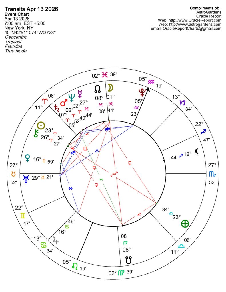 – Retrogrades – NONE – We are in the clear until May 6 when Pluto goes Retrograde in Aquarius
