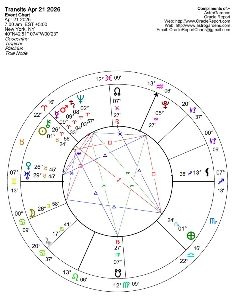 – Retrogrades – NONE – We are in the clear until May 6 when Pluto goes Retrograde in Aquarius