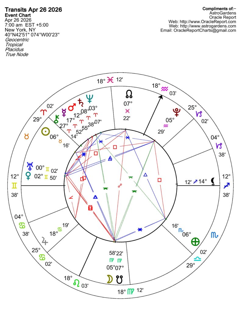 – Retrogrades – NONE – We are in the clear until May 6 when Pluto goes Retrograde in Aquarius